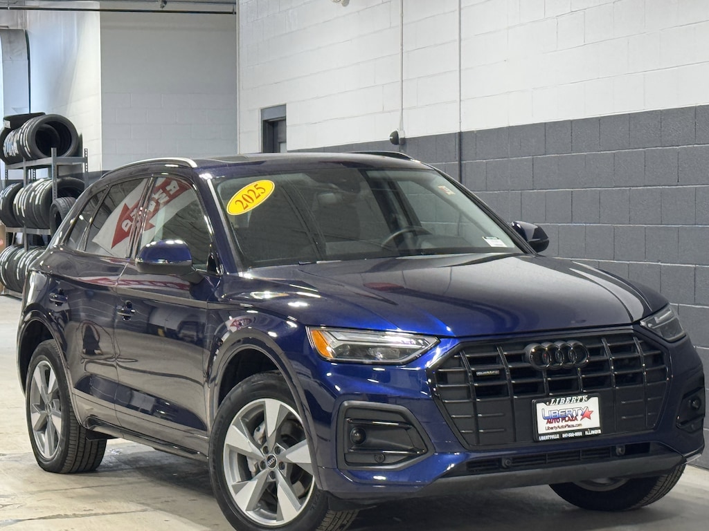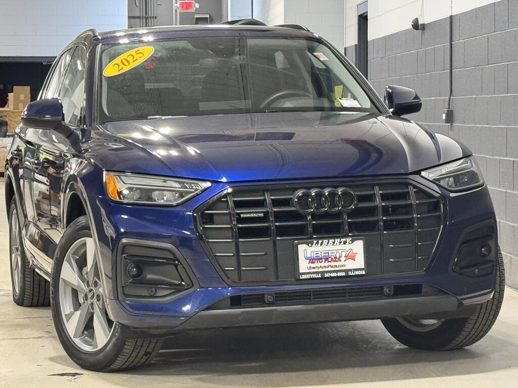 Navarra Blue Metallic 2025 Audi Q5 40 Premium quattro quattro 7-Speed Automatic S tronic 2.0L Turbocharged 1 OWNER CERTIFED CARFAX**, **LEATHER HEATED SEATS**, **ALLOY WHEELS**, **BACK UP CAMERA**, **CLEAN CERTIFIED CARFAX**, **ALL WHEEL DRIVE**, **PREMIUM SOUND SYSTEM**, **NON SMOKER**, **LOCAL TRADE IN**, **SUNROOF/MOONROOF**, **BLUE TOOTH/ HANDS FREE**, **I POD CONNECT**, Black Leather, 10 Speakers, Audi Virtual Cockpit Plus, Auto-dimming Rear-View mirror, Automatic temperature control, Black Exterior Trim, Black Roof Rails, Convenience Plus Package, Driver Seat Memory, Emergency communication system: Audi connect CARE, Front dual zone A/C, Panoramic Sunroof, Power driver seat, Power Folding Auto-Dim Exterior Mirrors with Memory, Power Liftgate, Power passenger seat, Rear air conditioning, SiriusXM with 360L, Wheels: 19" 5-Arm-Pylon Design with Matte Finish.